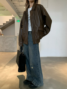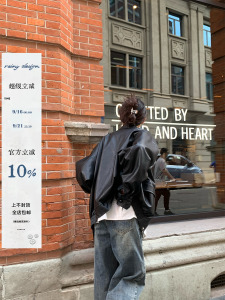 RAINY 酷女孩腔调 机车皮衣夹克春秋女新款美式黑色复古上衣外套