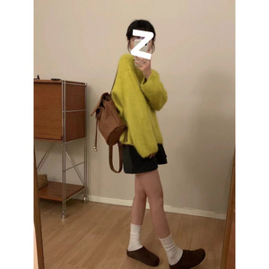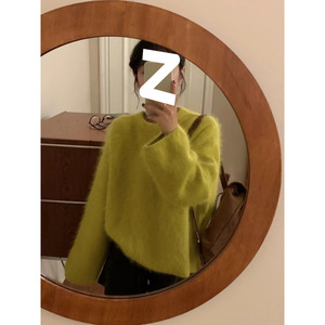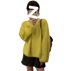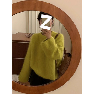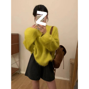 2025秋冬长毛水貂绒毛衣女短款圆领套头加厚水貂毛外套毛茸茸外穿