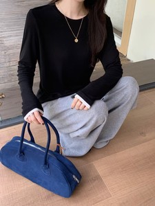 莱赛尔天丝羊毛假两件撞色打底衫女秋季休闲宽松内搭外穿显瘦上衣