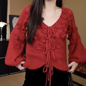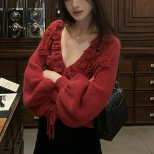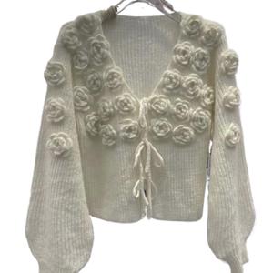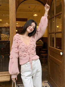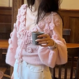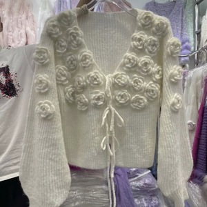 2025新款花朵温柔甜美针织设计开衫法式秋冬毛衣立体外套新款上衣