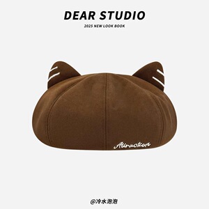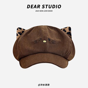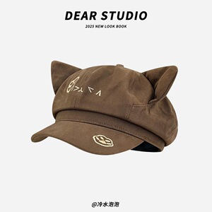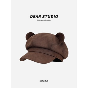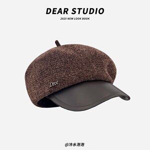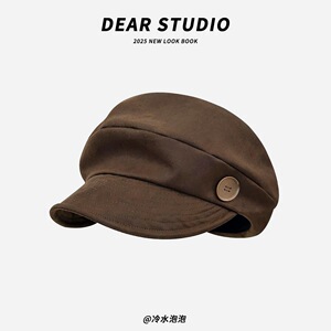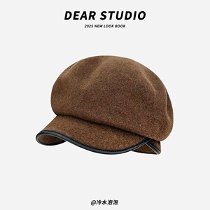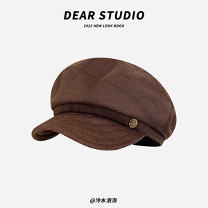 美拉德咖啡色八角帽子女秋冬季复古气质贝雷帽韩系时髦文艺报童帽