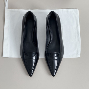 精致小女人极简ROW风!东莞外贸真皮女单鞋 尖头浅口小猫跟工作鞋