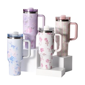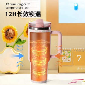 跨境304不锈钢手柄杯3D打印汽车杯创意繁华系列吸管杯保温保冷杯
