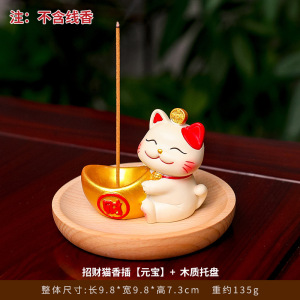 招财猫香插【元宝】+木制托盘+线香【三件套】