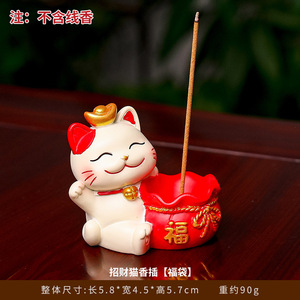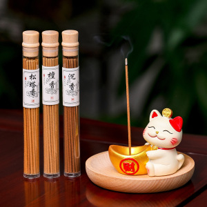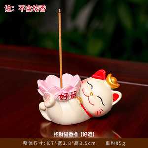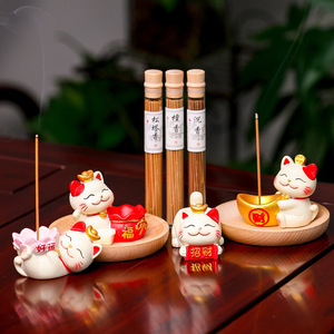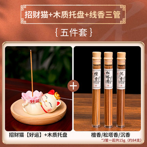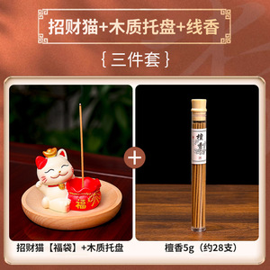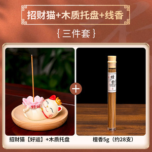招财猫香插【好运】+木制托盘+线香三管【五件套】