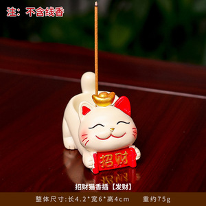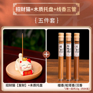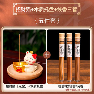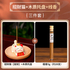 招财猫香插【发财】+木制托盘+线香三管【五件套】