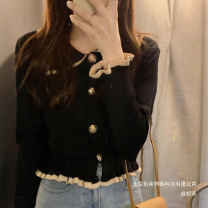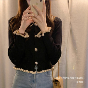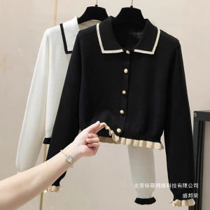 厂家直销法式短款翻领内搭修身长袖毛衣女针织衫开衫