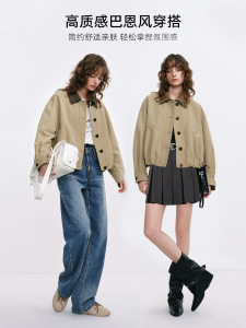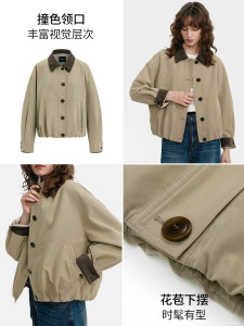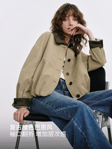 KBNE25秋季新款巴恩风短外套女小个子卡其色短款气质花苞长袖上衣