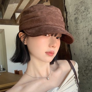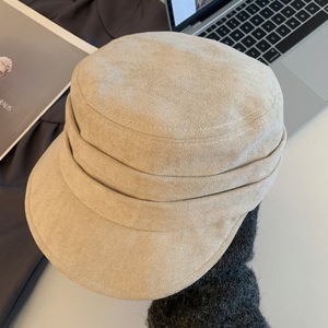 日式复古麂皮褶皱宽檐贝雷帽女时尚文艺大头围显脸小平顶马术帽子