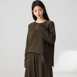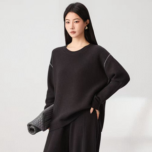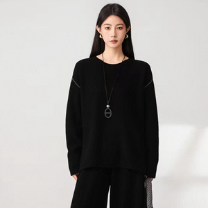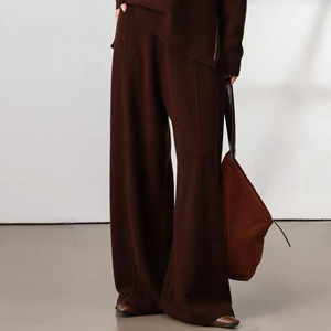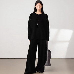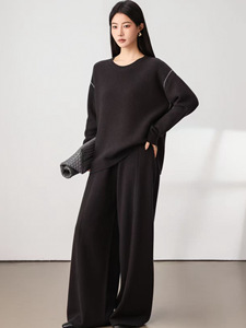 25秋季新款套装女士圆领100纯羊毛衫阔腿裤两件套慵懒风宽松女装