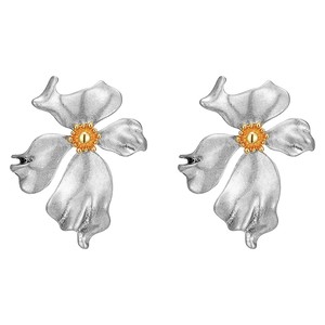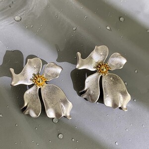 欧美夸张大花朵耳环女小众设计2025新款复古耳钉银色气质轻奢耳饰