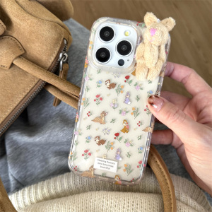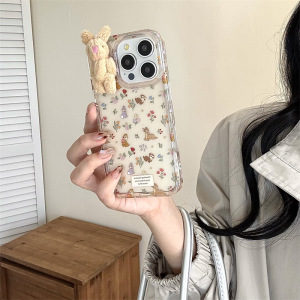 小清新花朵立体毛绒兔子适用iPhone17苹果16ProMax/15/14手机壳女