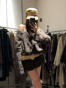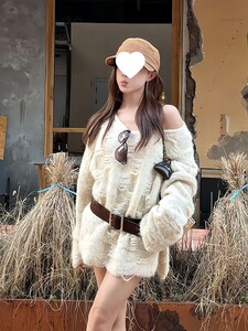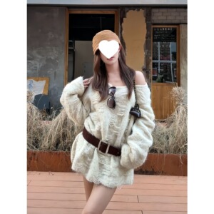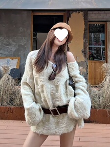 美式慵懒风撕裂感斜肩针织衫上衣女装秋季新款辣妹松弛感穿搭毛衣