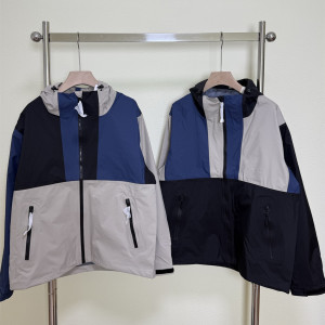秋冬户外运动休闲保暖防风防水透气冲锋衣拼色连帽男女同款外套