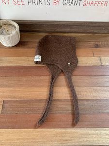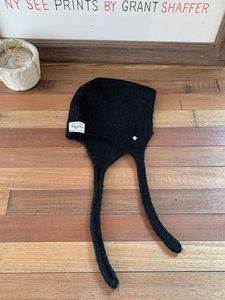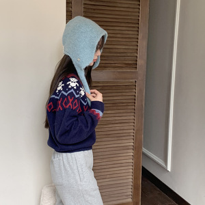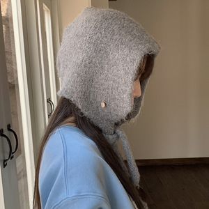 出口韩国软糯含羊毛针织帽冬天保暖系带可爱防寒套头帽布贴小红帽