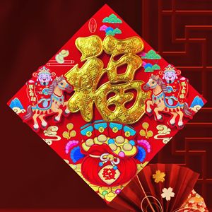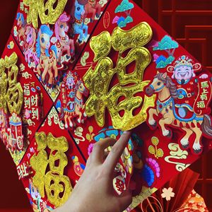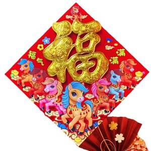 新年生肖福字门贴春节过年布置装饰品彩色全胶生肖植绒立体金福