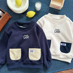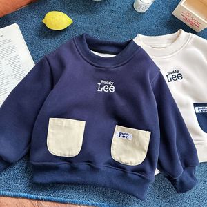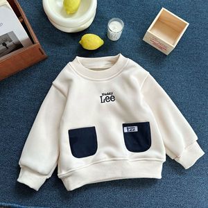 儿童卫衣2025冬中小童日系休闲抓绒卫衣小童一体绒字母卫衣