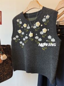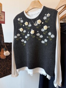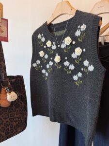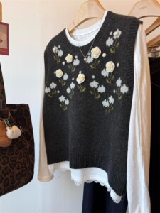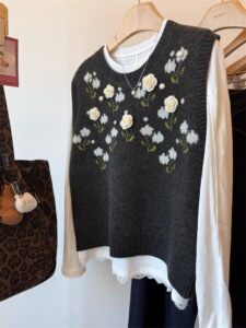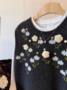 MUYANG 质感满满!立体白色花朵圆领无袖羊毛马甲背心女针织马夹