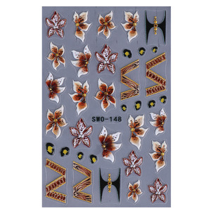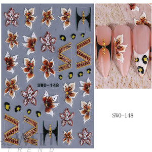 跨境爆款豹纹美甲贴纸 新款3D浮雕立体秋冬复古美拉德棕色冰花贴