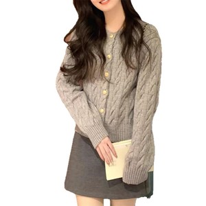 早秋2025新款内搭学生短款穿搭上衣灰色麻花针织毛衣开衫外套女