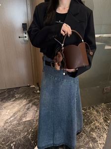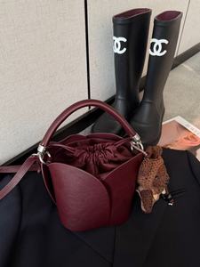 花瓣水桶包链条洋气个性时髦复古手提女包斜挎小众复古小包包抽绳