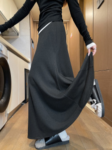黑色高级感法式鱼尾裙女秋季新款垂坠感包臀裙a字长款针织半身裙