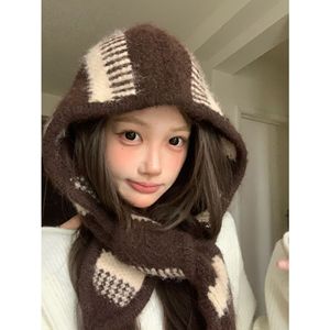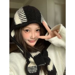 杨凯雯同款兔耳朵羊毛帽子围脖一体针织帽巴拉克拉法帽2025新款