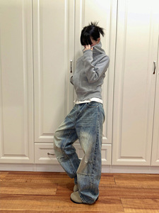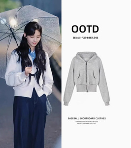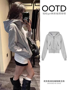 灰色收腰短款卫衣外套女修身上衣开衫秋冬季2025新款美式复古辣妹