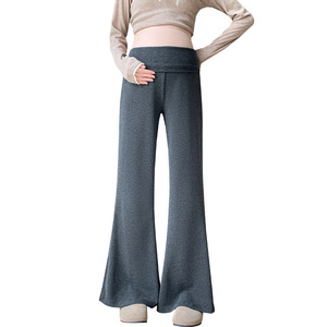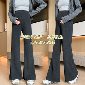 实拍孕妇针织微喇裤秋冬季2025新款垂坠感托腹裤细羊绒微喇休闲裤