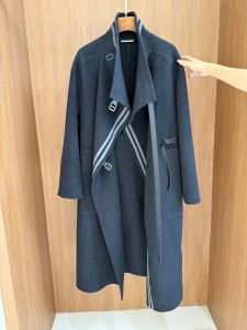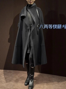 h家毛呢外套立领不规则设计优雅双面羊绒大衣25秋冬新款简约欧美