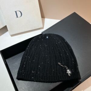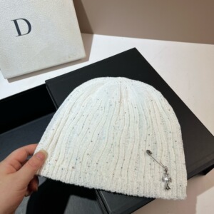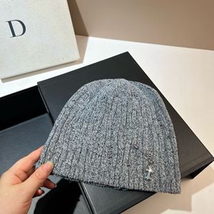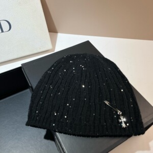 跨境热销复古十字架别针针织帽冬季小香风亮片毛线帽户外时尚套头