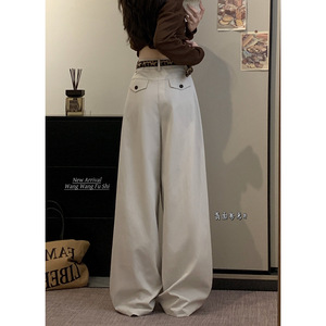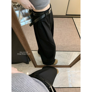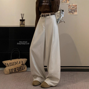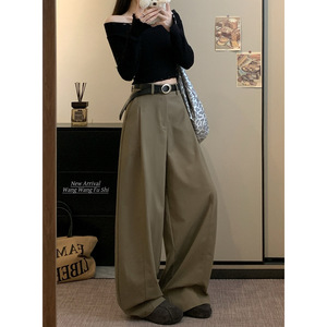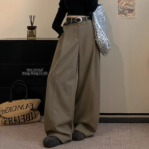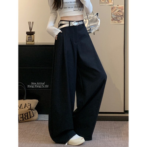 宽松垂感西装休闲裤女秋季纯色百搭阔腿裤子显瘦直筒高腰拖地长裤