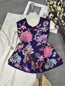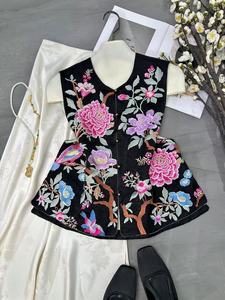 新中式国风重工牡丹刺绣马甲圆领上衣女2025南油待发女装不退不换