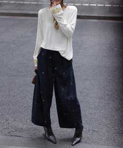 时尚套装2025秋季新中式设计云刺绣打底衫+宽松显瘦休闲裤两件套