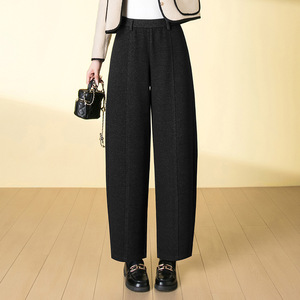 醋酸羊毛呢休闲弯刀裤2025年冬季新款松紧腰宽松显瘦窄版阔腿裤子