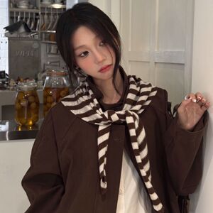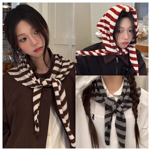 条纹三角巾女秋冬针织小围巾时尚保暖百搭护颈围脖韩版多功能披肩