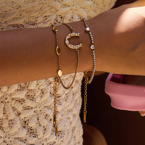 万兴欧美不锈钢幸运马蹄铁手链镶白色爱心锆石精致时尚女款手链
