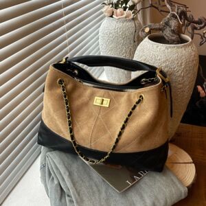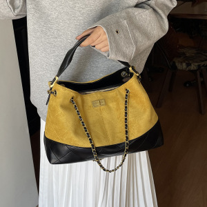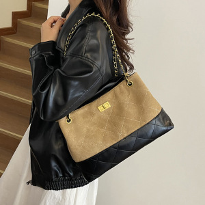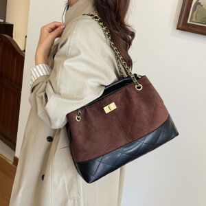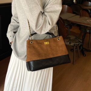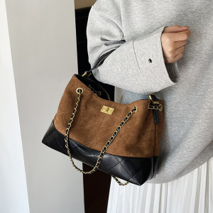 小香风菱格链条托特包女秋冬2025新款复古麂皮绒通勤大容量手提包