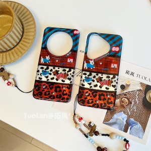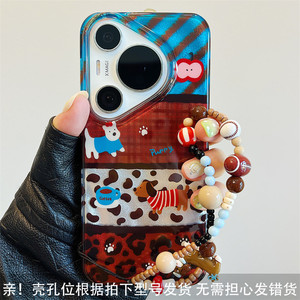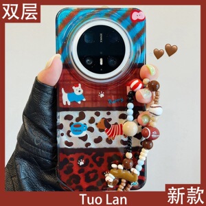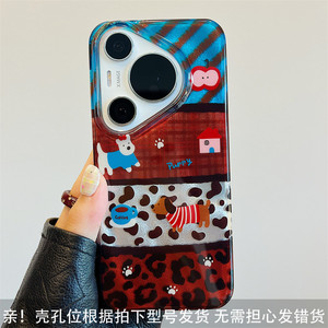 适用华为pura70pro+新款手机壳双层渐变Pura80pro秋冬拼接格纹豹纹卡通腊肠狗mate70/60pro挂绳硅胶男女