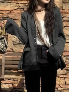 老钱风设计感单排扣外套女2025秋季新款大码胖MM气质时髦显瘦上衣