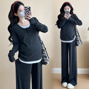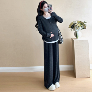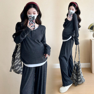 现货孕妇装秋装新款慵懒风假两件上衣+阔腿裤孕妇两件套装