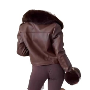 2025气质小个子大毛领短款女2025冬季复古机车加厚加绒皮衣外套