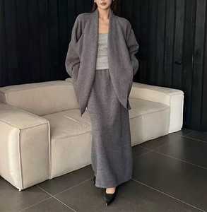 秋冬搭配一整套女韩系慵懒风高级感翻领针织开衫外套半身裙两件套