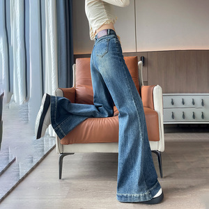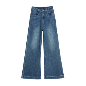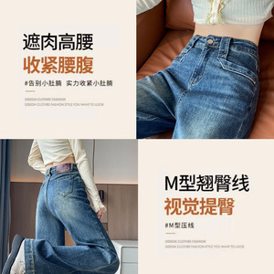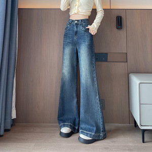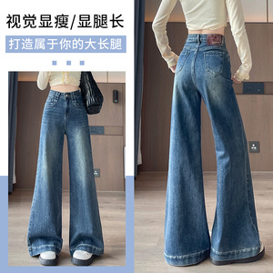 高腰显瘦宽松阔腿牛仔裤女2025秋季新款美式复古小个子直筒微喇裤