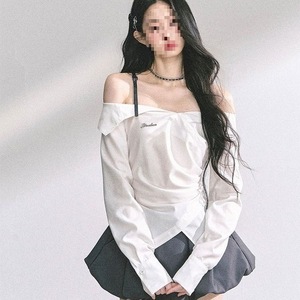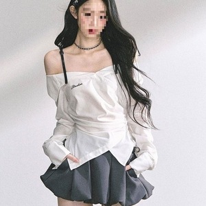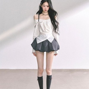 白色上衣灰色半裙两件套