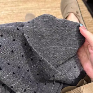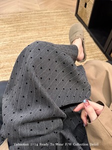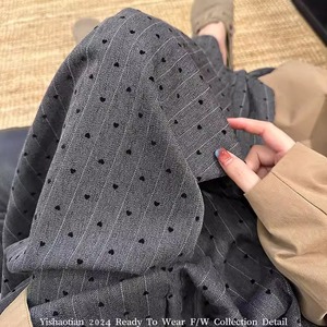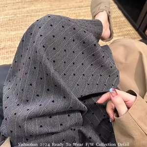 灰色条纹爱心植绒阔腿裤女2025秋季新款韩系高腰宽松直筒西装裤子
