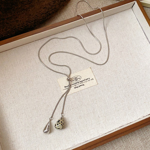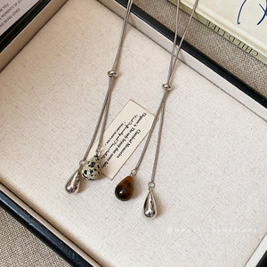 虎眼石水滴抽拉式项链冷淡风简约时尚毛衣链百搭项饰饰品女高级感
