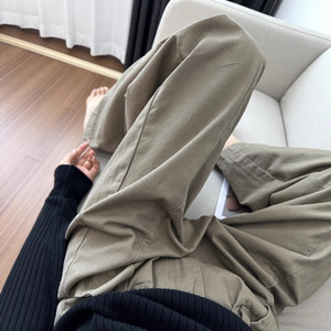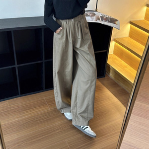 复古卡其色阔腿休闲裤女2025春秋季松紧腰宽松弯刀裤美式山本裤子