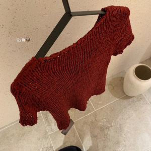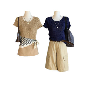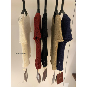 WGWE7387韩系纯色圆领粗针短袖针织衫女宽松显瘦上衣