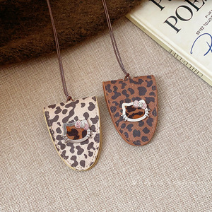 皮革磁吸猫咪三角形项链轻奢小众百搭毛衣链时尚项饰饰品女高级感
